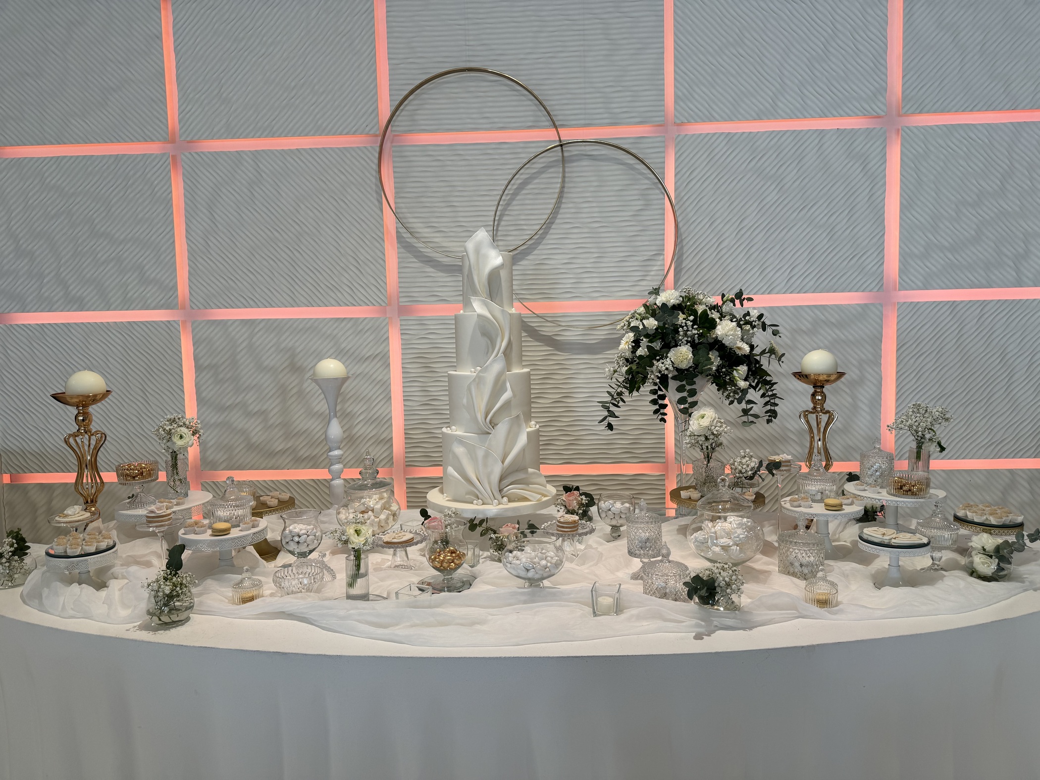 Per un matrimonio in stile Cloud Dancer, suggeriamo di giocare con i materiali e le consistenze della struttura stessa: